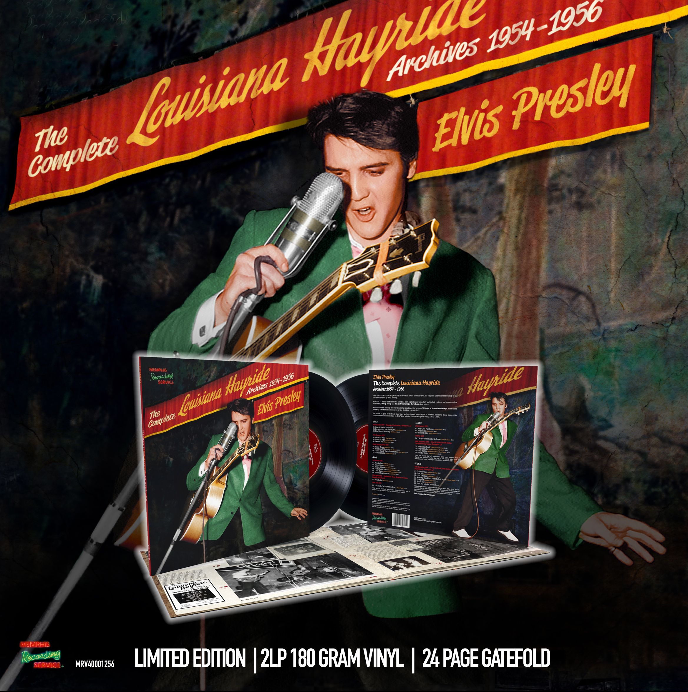 This LIMITED EDITION 180 gram 2LP set contains for the first time ever, the complete archival live recordings of the Louisiana Hayride by Elvis Presley from 1954 – 1956 on vinyl.